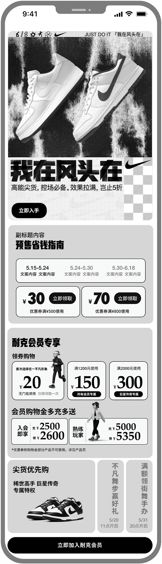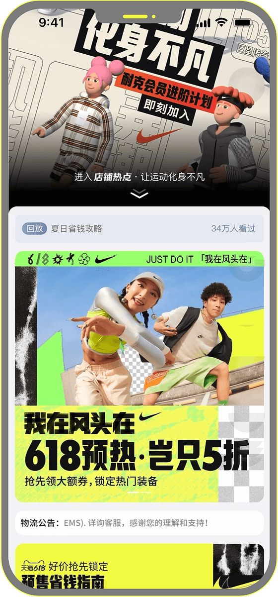This was Nike’s primary digital campaign for the 2022 618 promotion. The task was to redesign the Tmall flagship homepage so it could better convert traffic during the peak sales period.